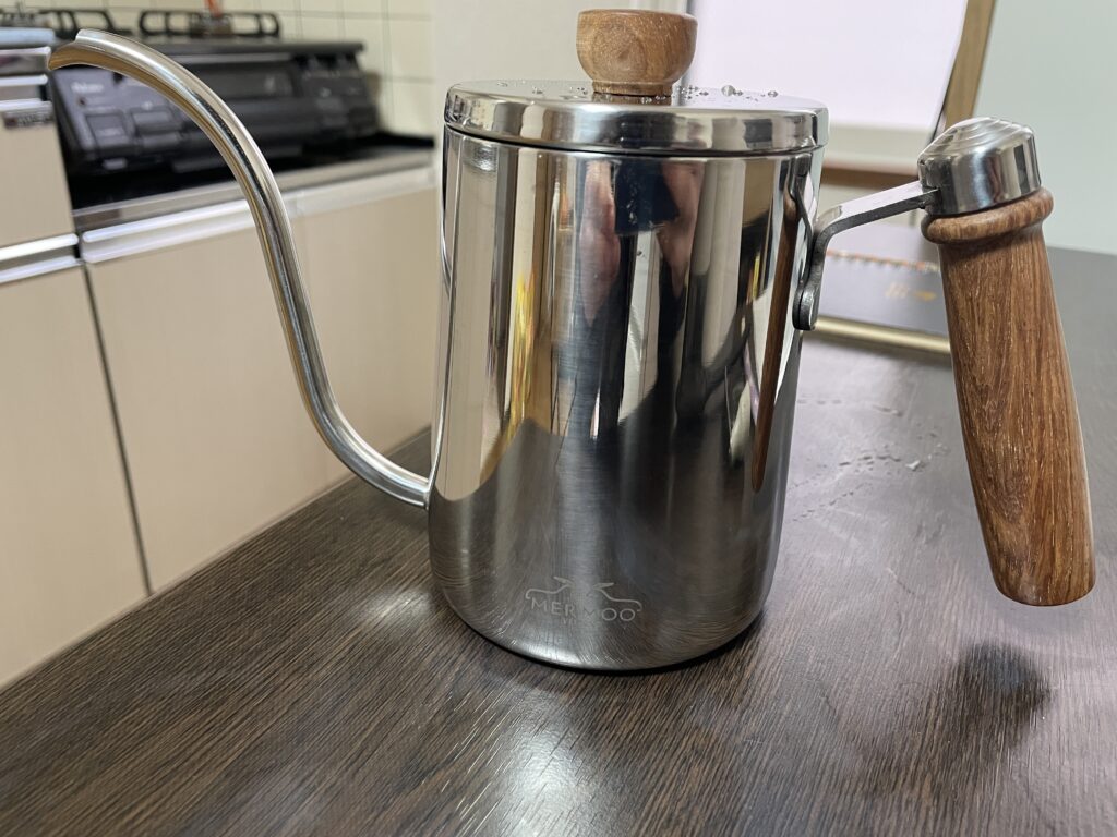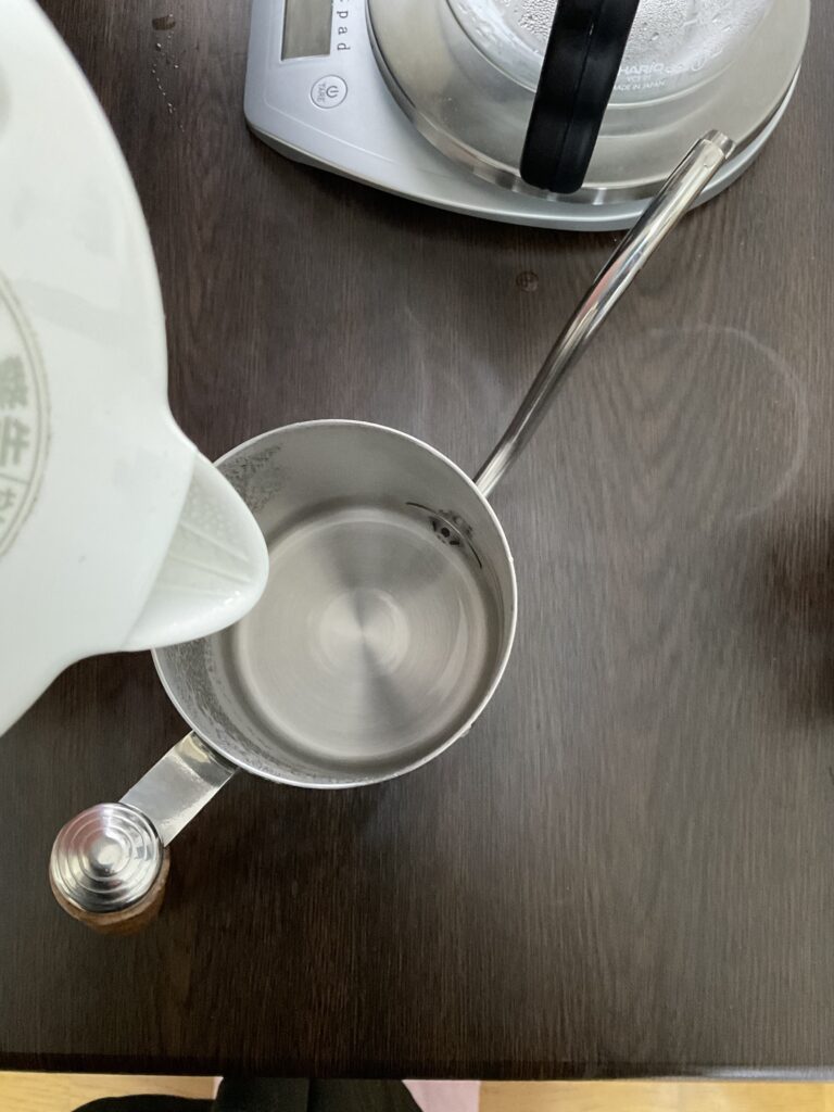 タケシは普段電気ケトルで沸かしてから珈琲ポットに移し替えています。(淹れる直前に移し替えるのが良いと思います。ケトルで先にお湯ができたとして、ケトルなら温め直しが簡単だからです。)