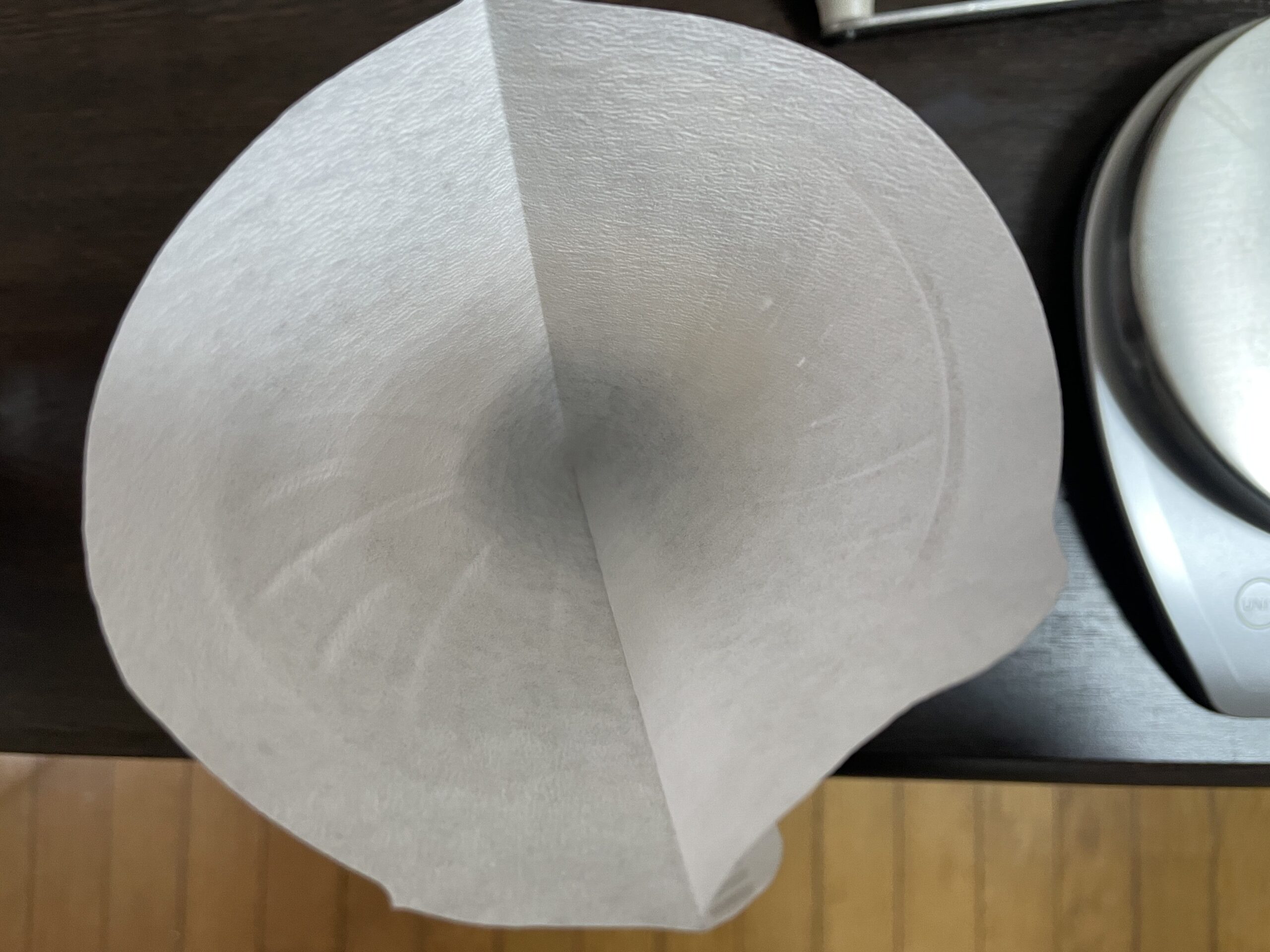 ペーパーフィルターの端を折り、広げたらドリッパーにセットします。